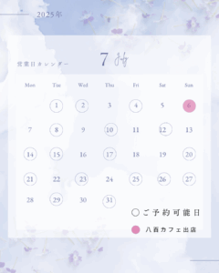 こんにちは!サロンノカルです 9月のご予約枠のお知らせです📢そして、9月のマルシェは7日(日) 毎月出店させて頂いている「八百カフェ」は芸術の森キャンパスで9時〜12時まで開催しております 美味しいフード […]