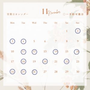 こんにちは!サロンノカルです♪ 11月になりました早いもので今年もあと2ヶ月です残りの2025年も張り切って参りましょう 年末は一年頑張ったご自身に是非、優しい言葉をかけてご褒美をプレゼントしてあげましょう ノカルのおす […]